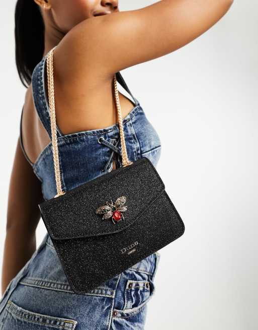 Dune chain strap mini bag with bug embellishment in black