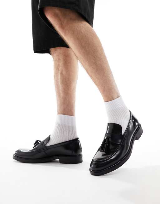 Dune chunky leather tassle loafer in black