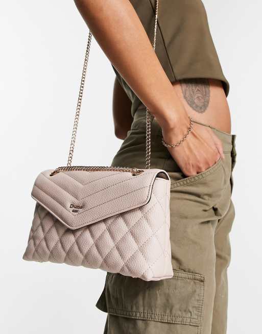 Dune diamond quilt shoulder bag with chain strap in light beige