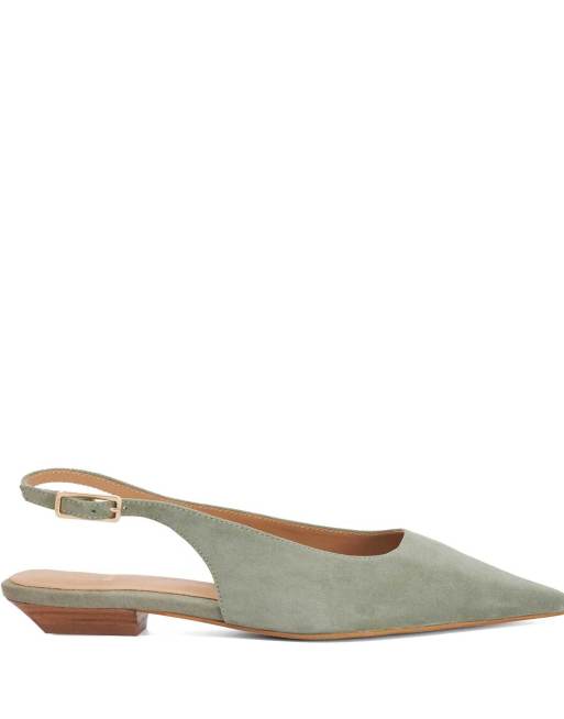 Dune London Hostess ballet pumps in sage suede
