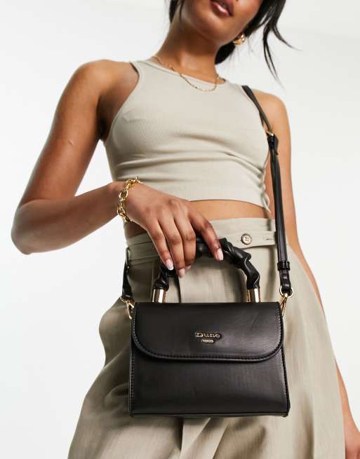 Dune ruched handle mini cross body bag in black