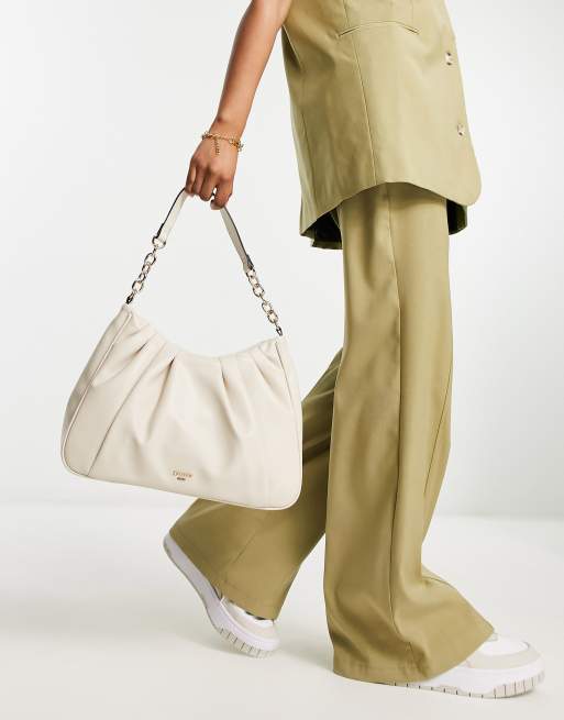 Dune ruched shoulder bag with chain strap in cream