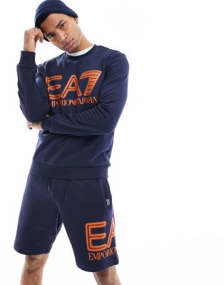 Armani EA7 chest neon logo sweatshirt in navy co-ord