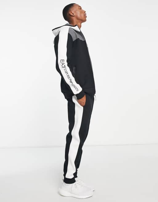 Armani EA7 colour block hooded tracksuit in black/ white/ grey
