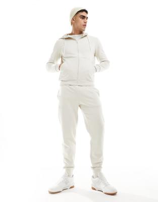 Armani EA7 front & back logo sweat full zip hoodie and jogger tracksuit in beige