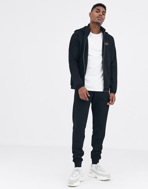 Armani EA7 Gold Label logo pique tracksuit set in black