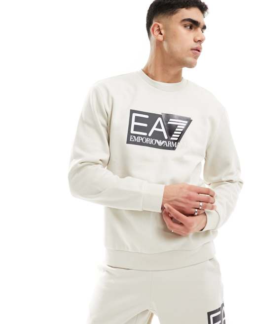 Armani EA7 large chest logo sweatshirt in beige co-ord