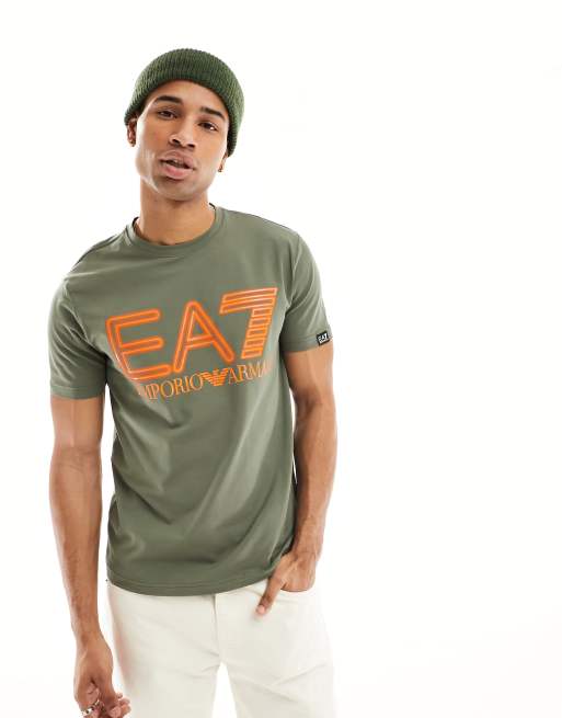 Armani EA7 large neon chest logo t-shirt in khaki green