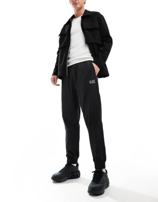 Armani EA7 logo contrast piped pockets cuffed joggers in black