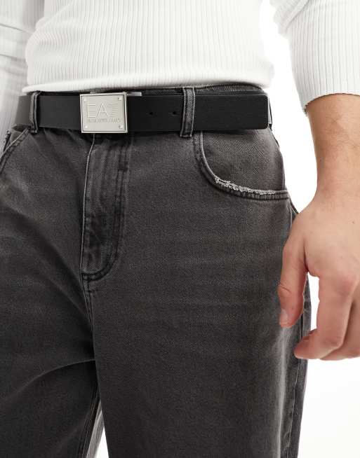 Armani EA7 logo plaque reversible leather belt in black/green