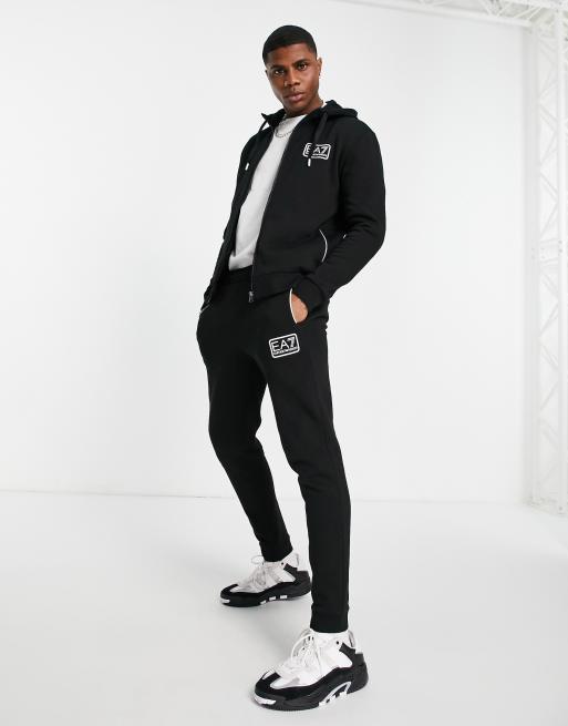 Armani EA7 Train Core ID box logo zip through hooded fleece tracksuit in black