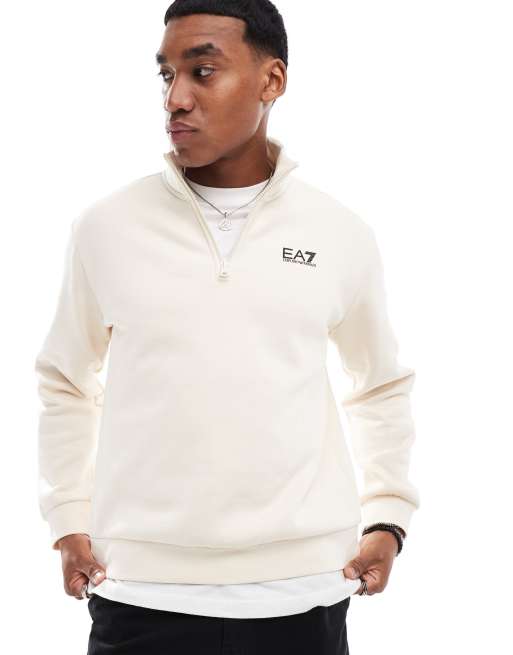 EA7 half zip funnel neck sweatshirt in stone with chest logo