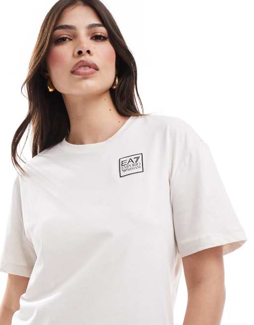 EA7 t-shirt in cream with square logo