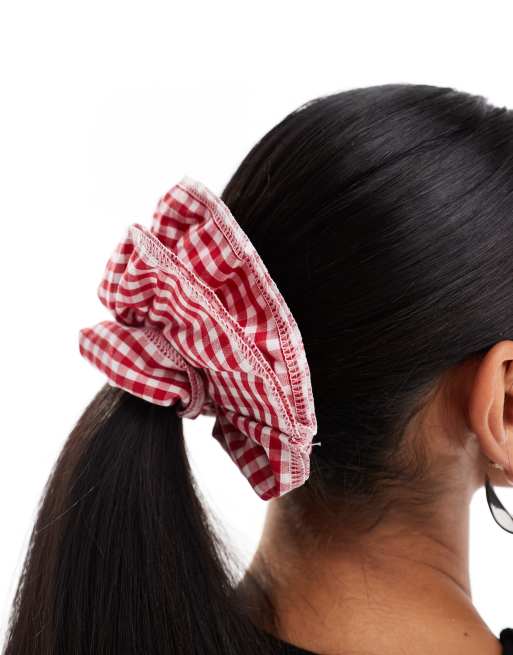 Easilocks X ASOS Exclusive Gingham oversized scrunchie - Red