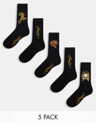 Ed Hardy Arola tattoo graphic 5 pack crew socks in black