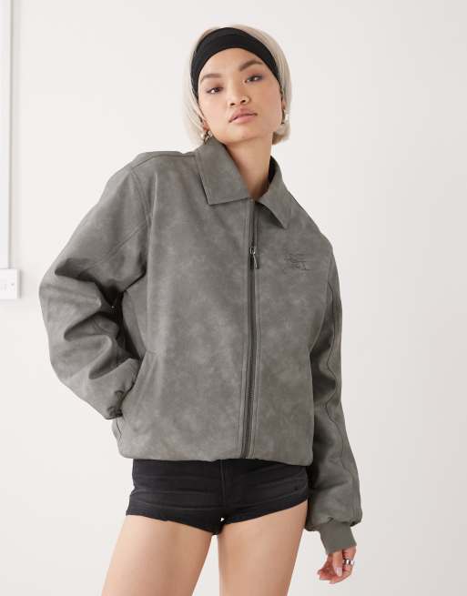 Ed Hardy black cobra embossed faux leather jacket in grey