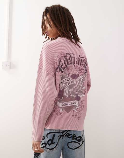 Ed Hardy brave heart eagle knitted jumper in dusty pink