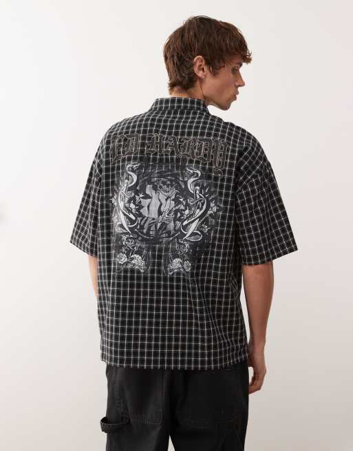 Ed Hardy deathly snake reaper check boxy shirt in black and beige