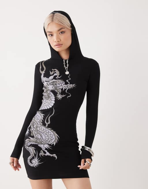 Ed Hardy dragon hooded mini dress in black