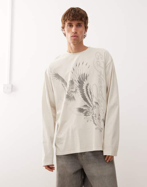 Ed Hardy eagle battle long sleeve t-shirt in cream