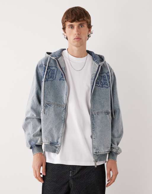 Ed Hardy flaming cross denim zip up jacket in bleach