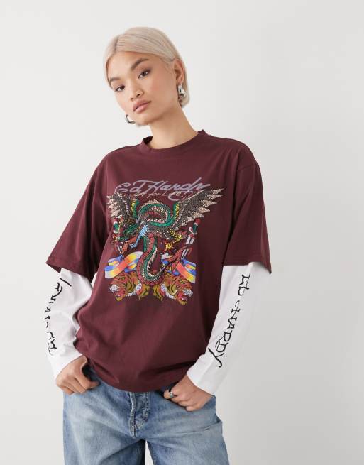 Ed Hardy flying dragon double layer t-shirt in red