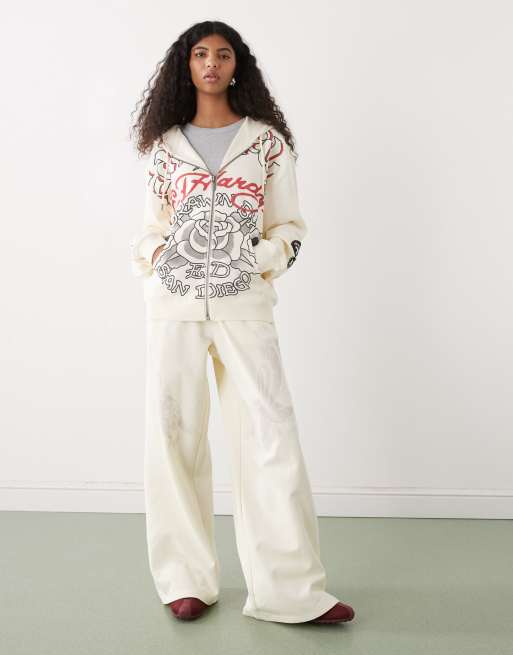 Ed Hardy flying eagle wide leg joggers in ecru co-ord