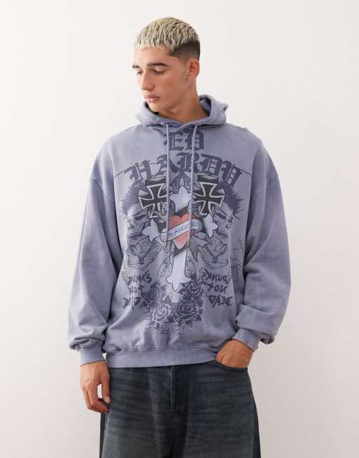 Ed Hardy gothic cross hoodie in indigo