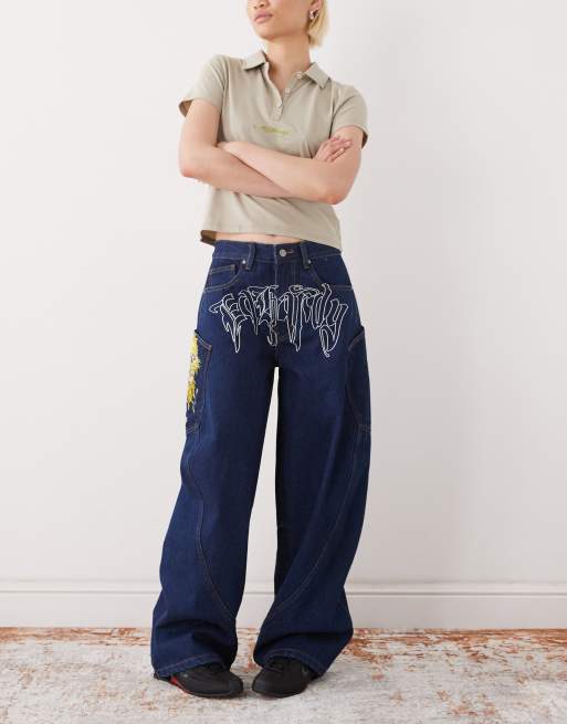 Ed Hardy gothic skull relaxed balloon jeans in indigo
