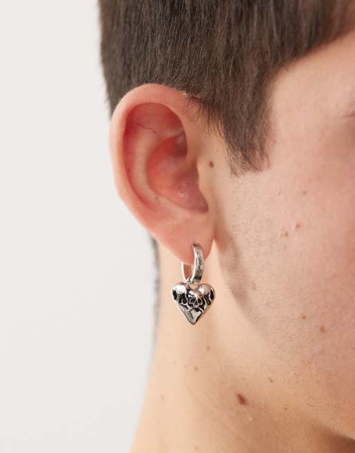 Ed Hardy heart pendant hoop earrings in silver