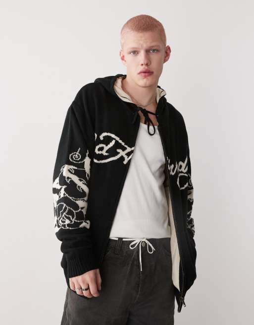 Ed Hardy knitted love kills zip through hoodie in black