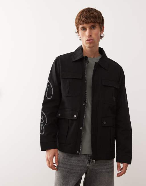 Ed Hardy outline dragon chore jacket in black