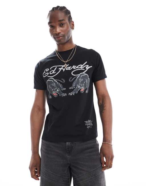 Ed Hardy oversized double panther logo t-shirt