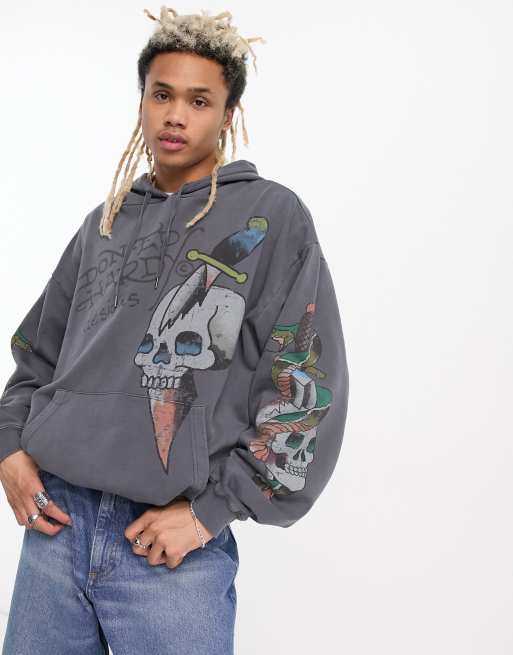 Ed Hardy relaxed hoodie with logo and skull grpahic