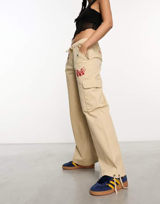 Ed Hardy relaxed low rise cargo trousers with red embroidery