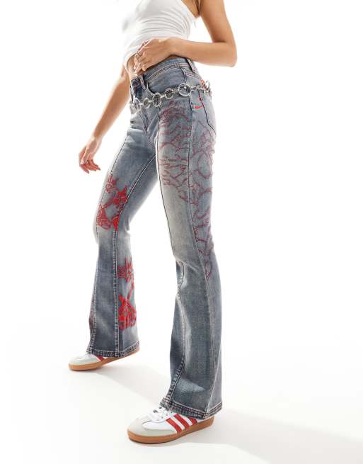 Ed Hardy rogue heart embroidered flare jeans in blue