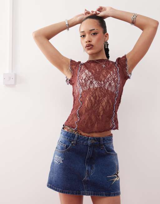Ed Hardy swallow side wash low rise denim mini skirt in washed indigo