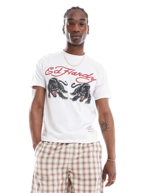 Ed Hardy unisex double panther logo t-shirt white