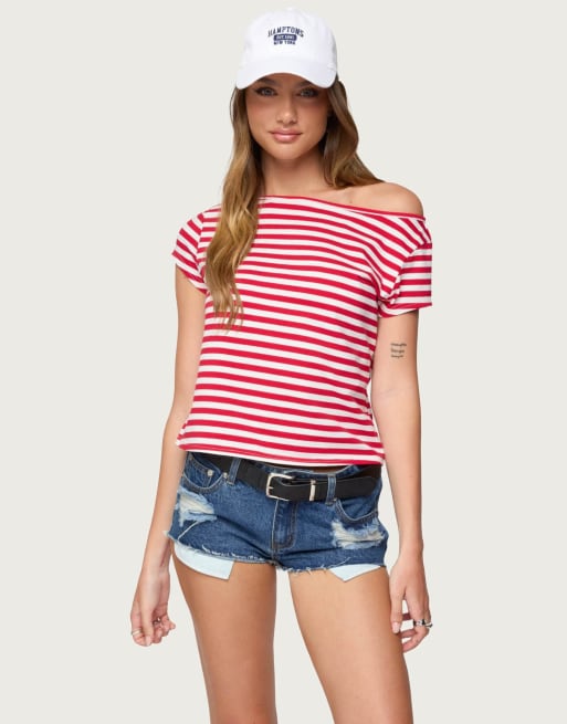 Edikted Aretha striped off shoulder top in red