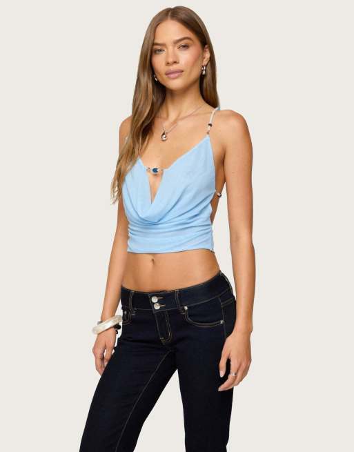 Edikted Beaded deep cowl neck backless top in light blue