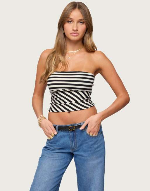 Edikted Betsana striped tube top in black and cream