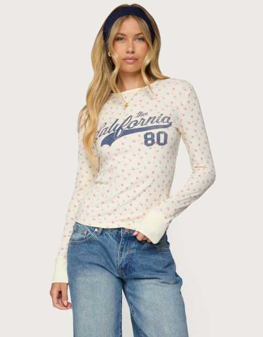 Edikted Cali floral ribbed long sleeve t shirt in cream