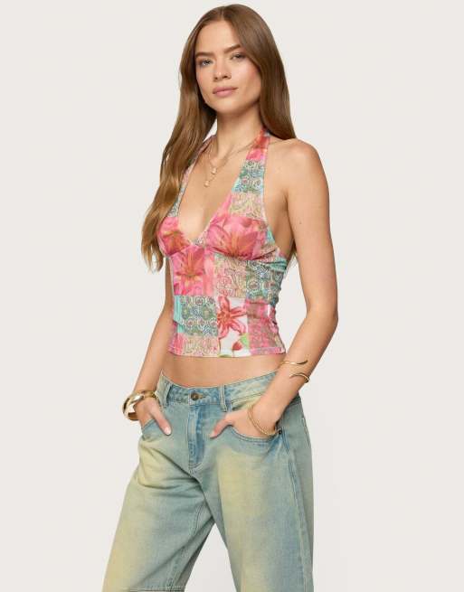 Edikted Catie printed mesh halter top in mix