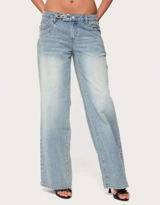 Edikted Celia grommet washed low rise jeans in light blue