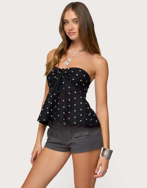 Edikted Izzey polka dot strapless babydoll top in black