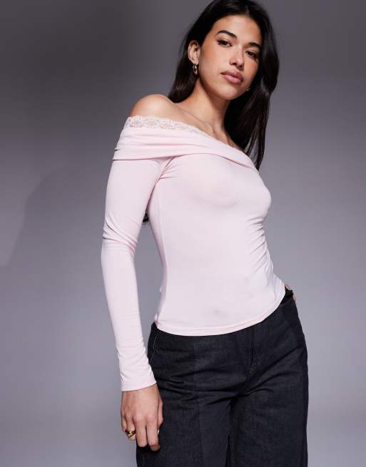 Edikted Janus lacey fold over top in pink