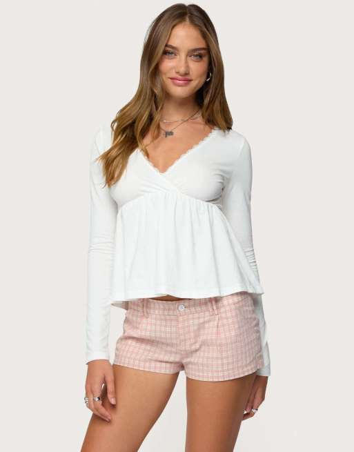 Edikted Kenzie long sleeve babydoll top in white