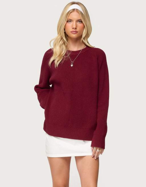 Edikted Lavonne oversized knit raglan sweater in burgundy