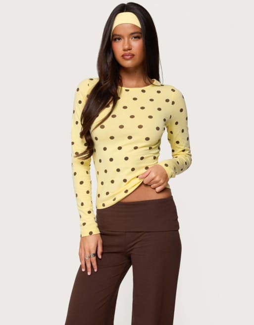 Edikted Maricelle polka dot long sleeve t shirt in yellow