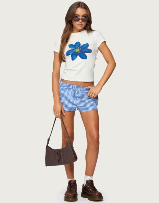 Edikted Maryanne gingham boxer shorts in blue